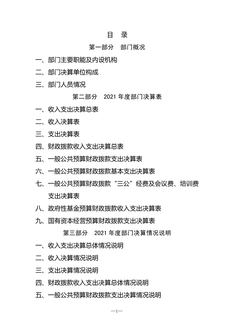 2021年县级部门决算公开目录