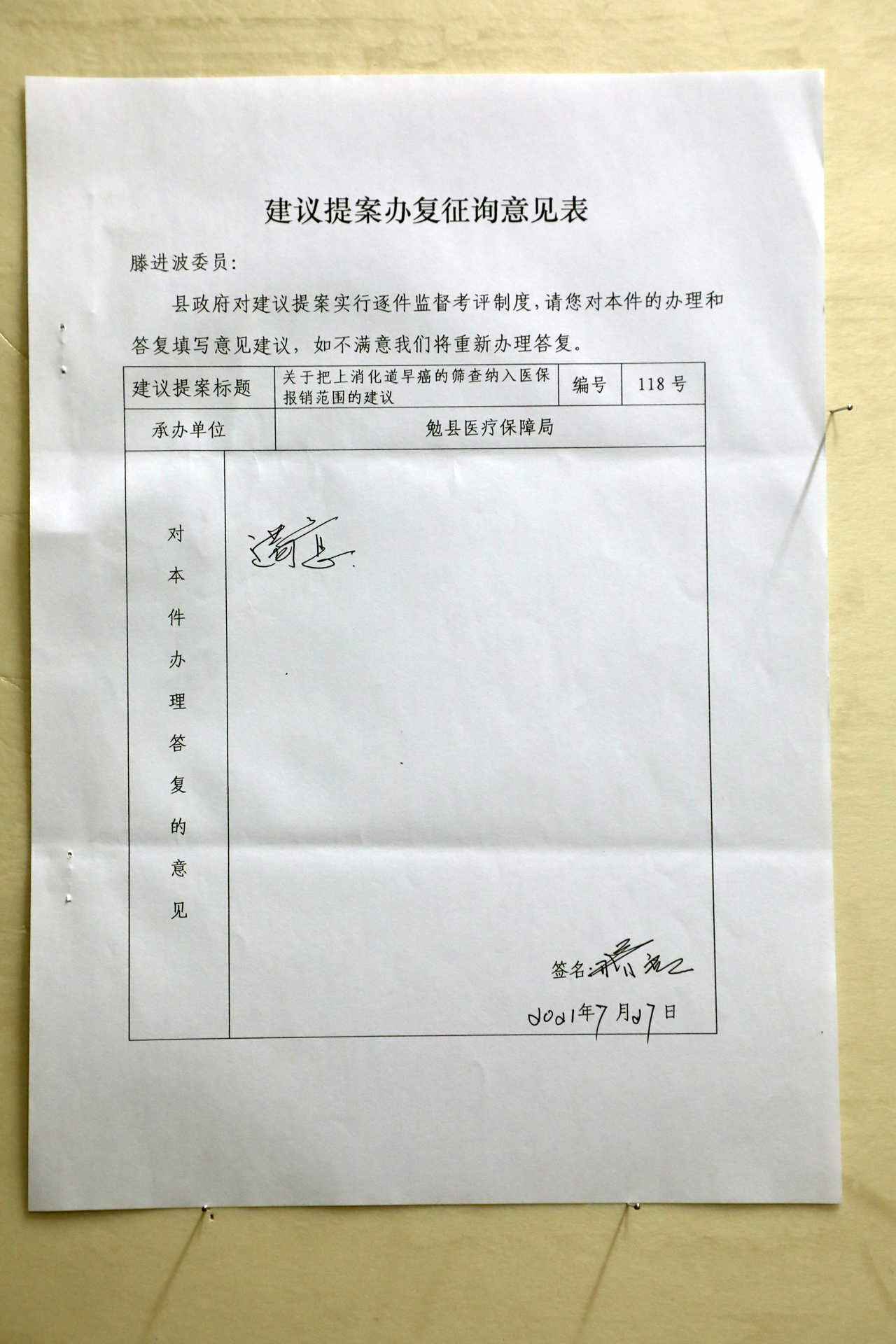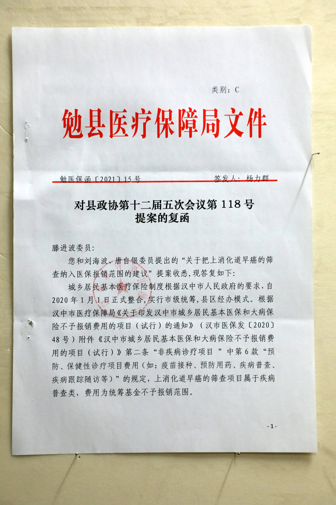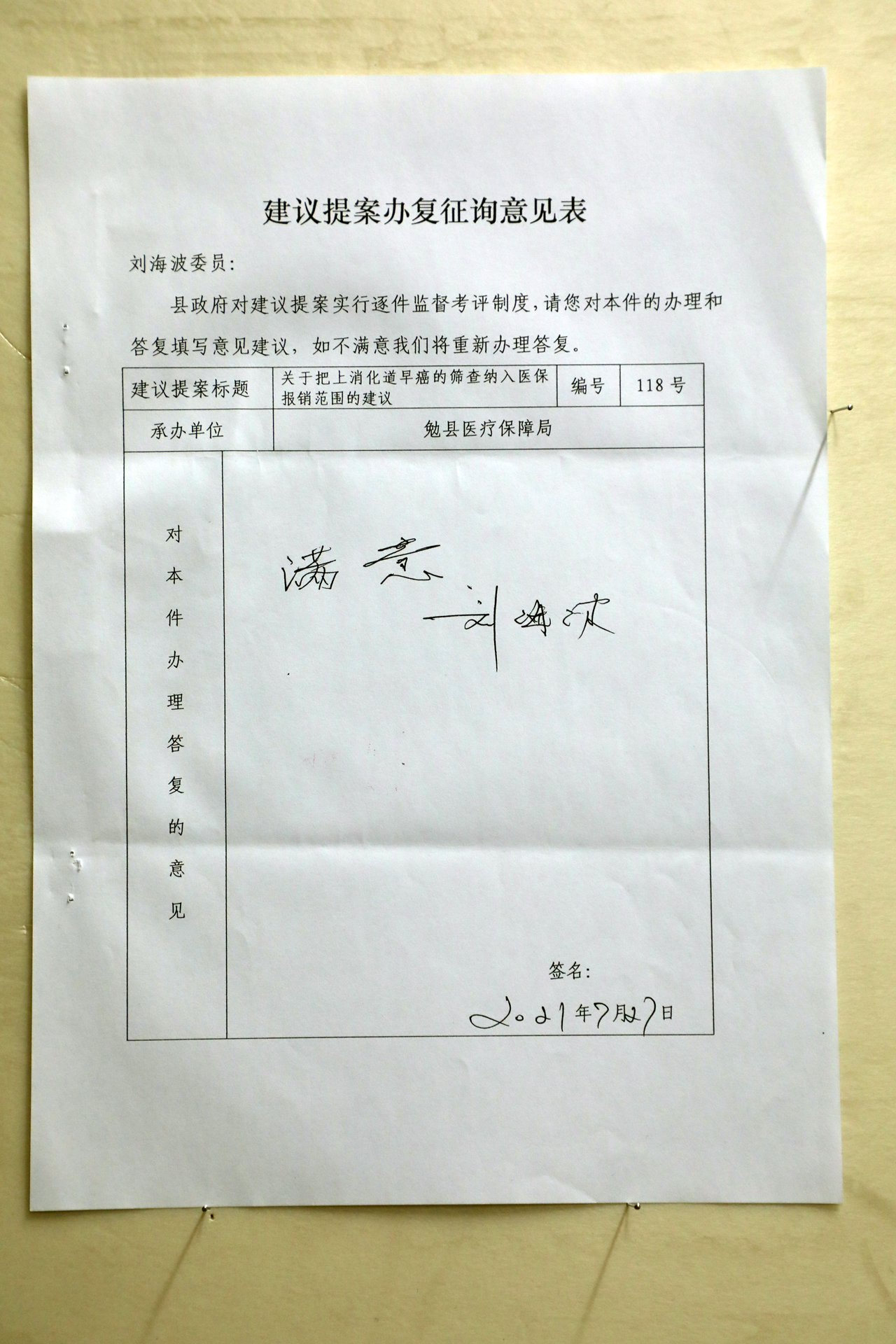 关于把上消化道早癌的筛查纳入医保报销范围的建议
