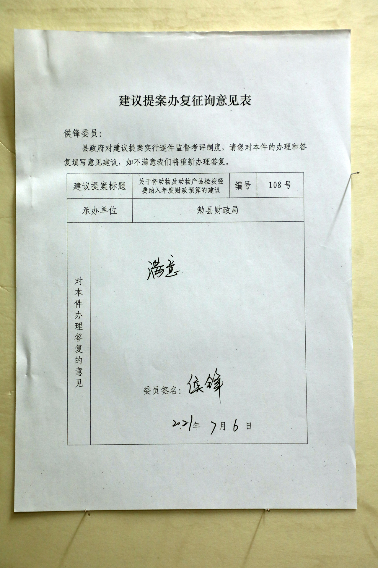 开展动物及动物产品检疫是杜绝外来疫病传入,确保畜牧业产业安全和人民群众“舌尖上的安全”的有效手段。在2015年11月前,畜牧中心收缴的动物检疫费全额上缴财政,县财政按标准扣除后返还的非税收入全部用于开展动物及动物产品检疫监督工作;按照财税〔2015〕102号、陕财办综〔2015〕140号文件精神,国家从2015年11月1日起取消动物及动物产品检疫费,政策取消收费后县财政未安排动物及动物产品检疫工作经费。建议:为了保障动物及动物产品检疫监管工作,确保“两个安全”,请求县政府、县财政局将动物及动物产品检疫工作经费30万元纳入年度财政预算。
