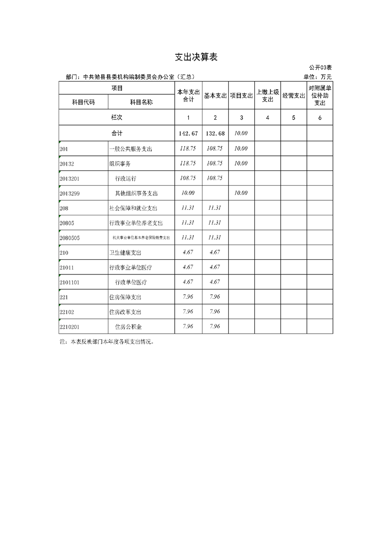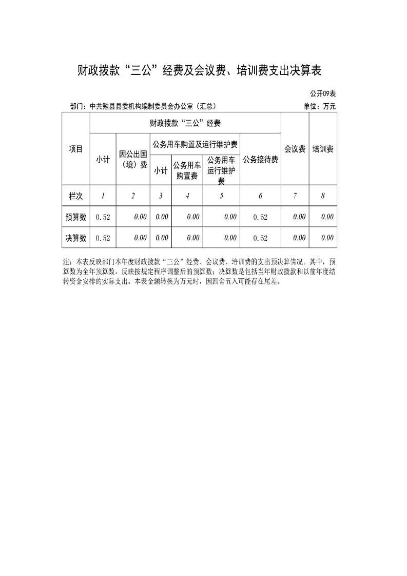 中共勉县县委机构编制委员会办公室2022年度部门决算公开