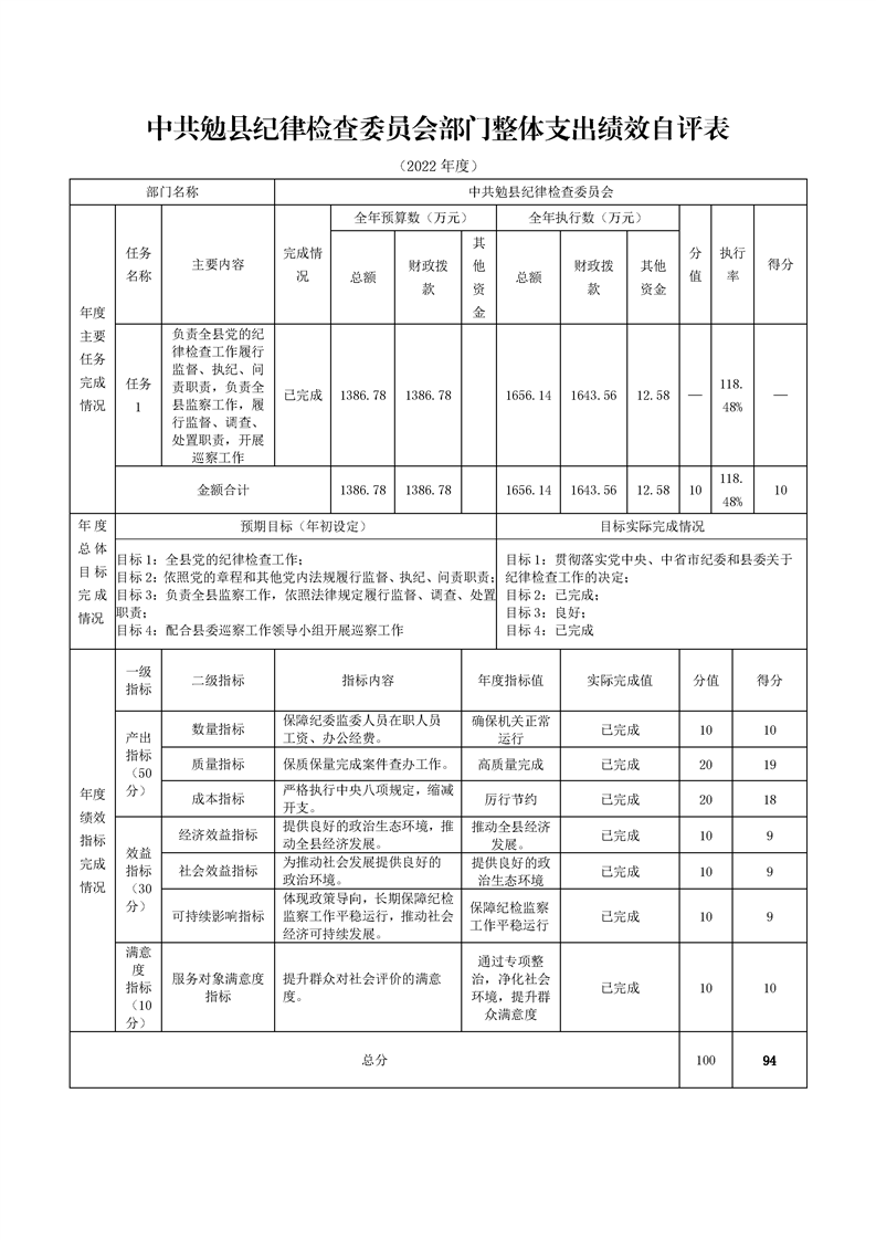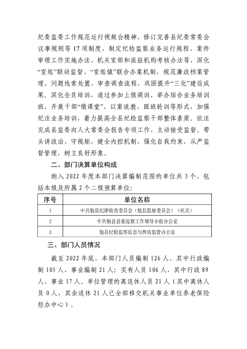 中共勉县纪律检查委员会(勉县监察委员会)2022年度部门决算公开