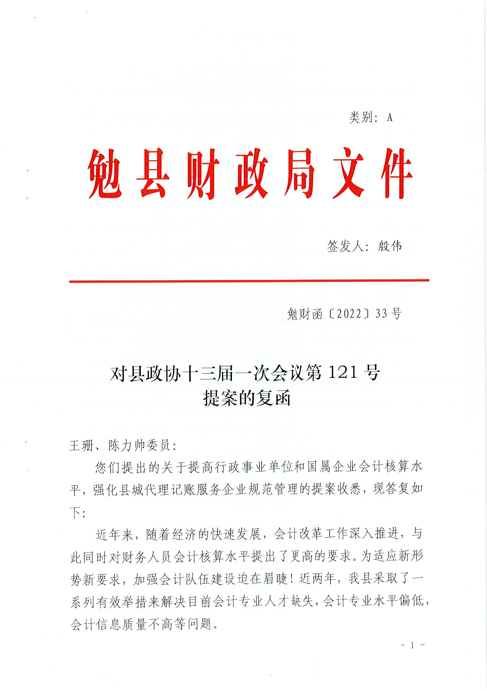 关于提高全县行政事业单位和国属企业会计核算水平,强化县城代理记账服务企业规范管理的提案