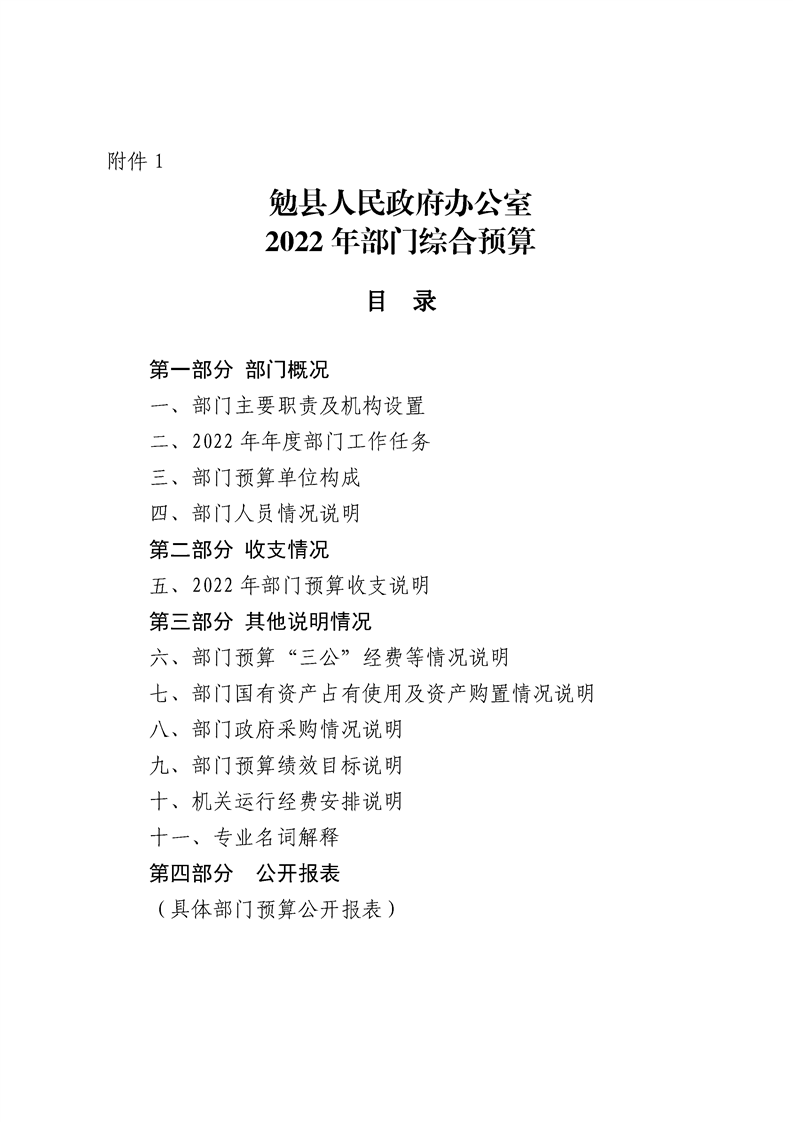 勉县人民政府办公室2022年部门综合预算公开