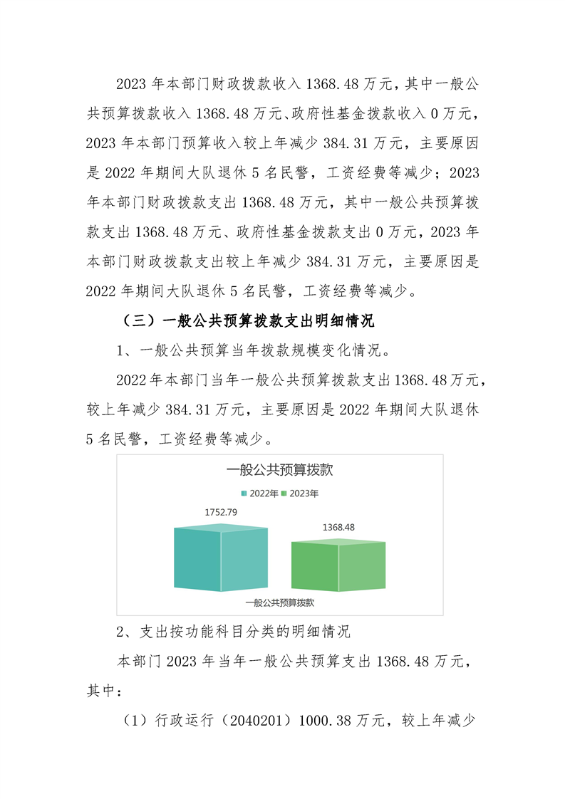勉县公安局交通管理大队2023年部门预算公开说明