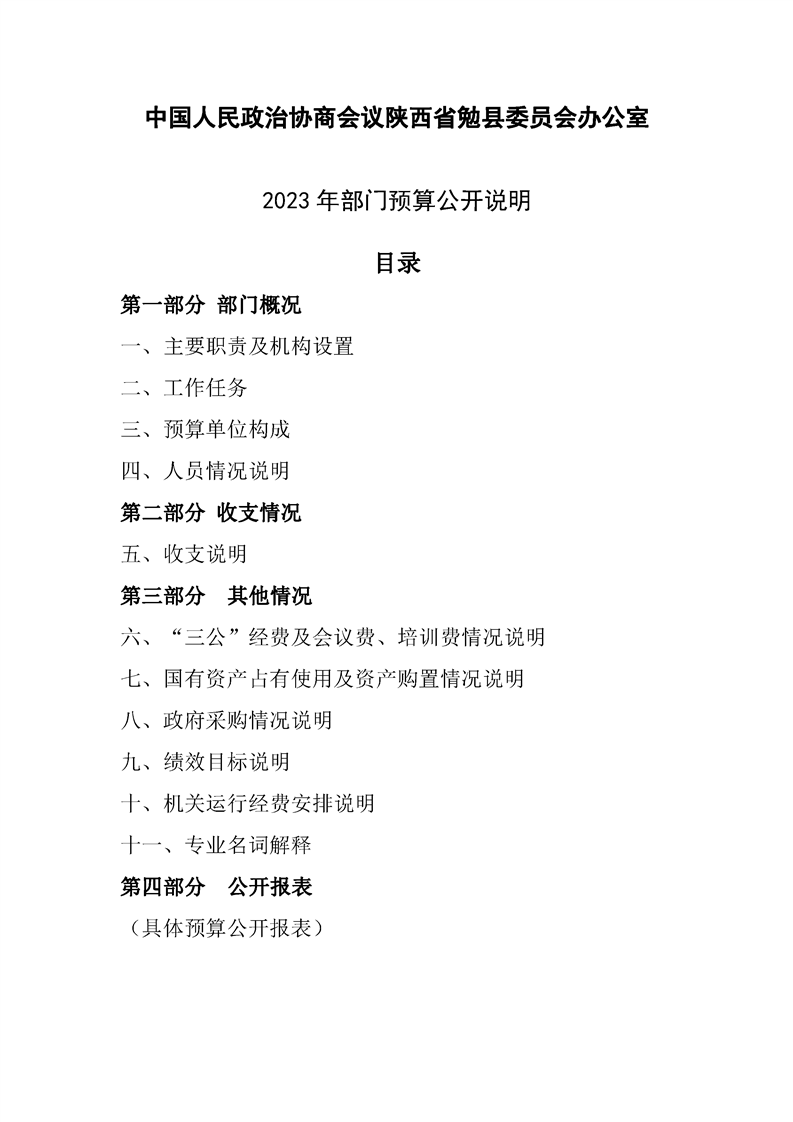 中国人民政治协商会议陕西省勉县委员会办公室2023年部门预算公开说明