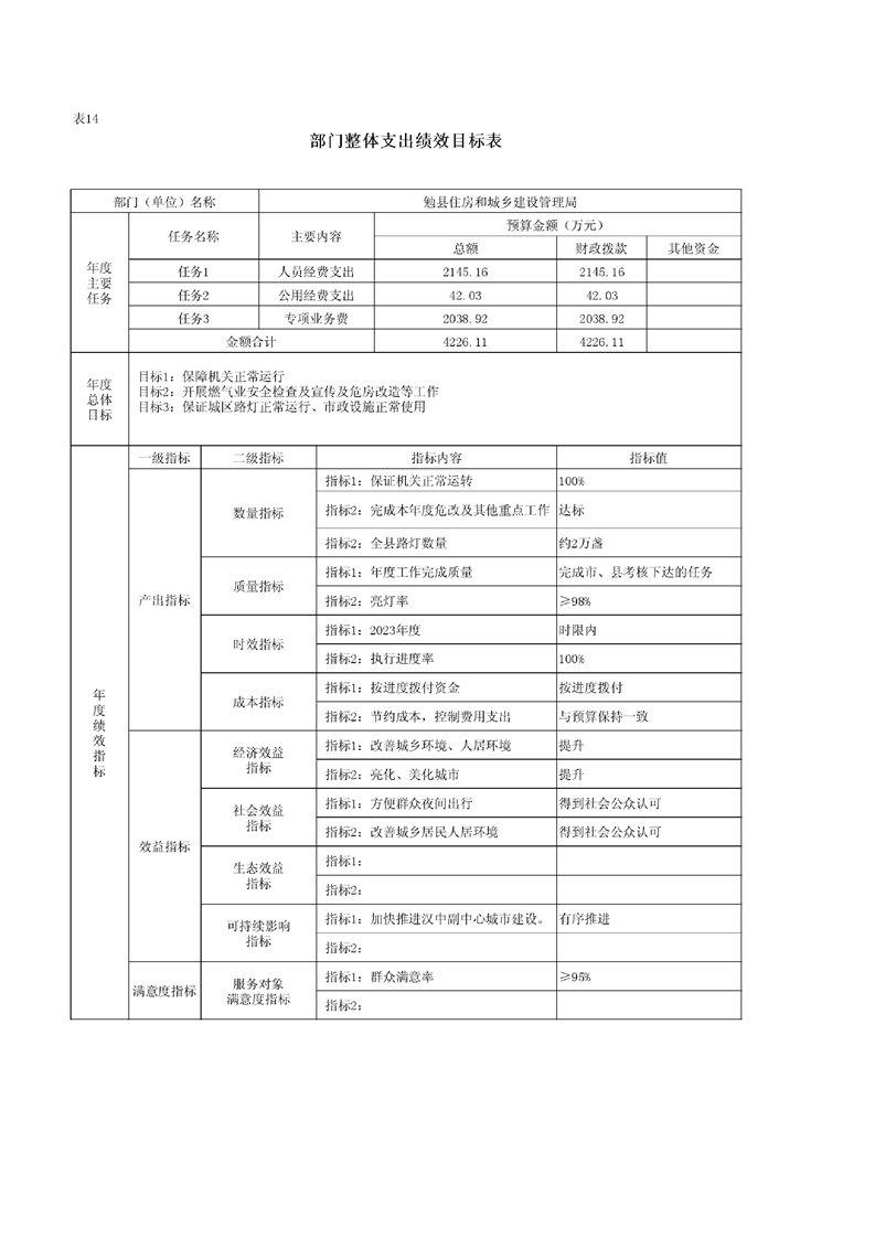 勉县住房和城乡建设管理局2023年部门预算公开说明