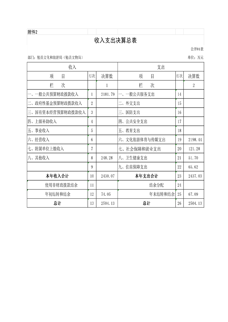 勉县文化和旅游局(勉县文物局)2023年度部门决算公开