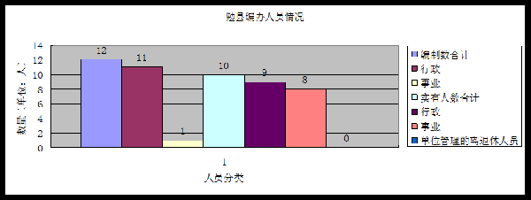 截止2017年底,本部门人员编制12名,其中行政编制11名、机关工勤编制1名;实有人员10人,其中行政9人、机关工勤1人。单位管理的离退休人员2人已全部交养老办。(见下图)
