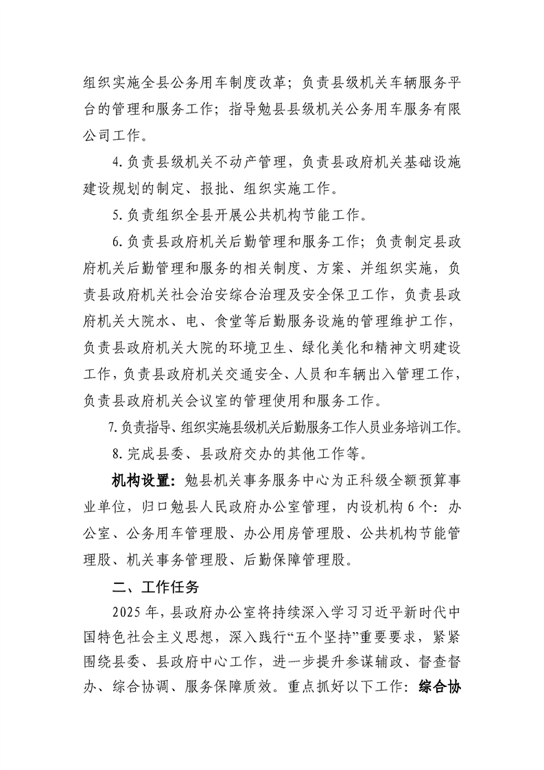 勉县人民政府办公室2025年部门预算公开说明