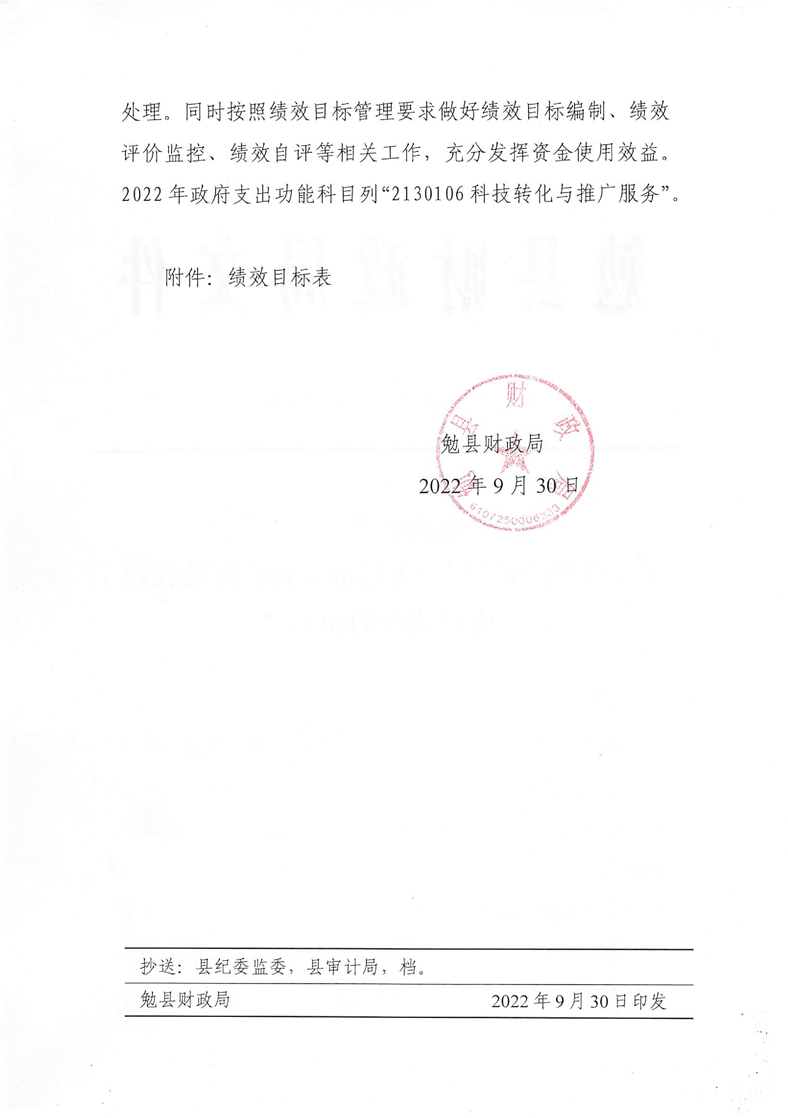 勉财涉农整发【2022】30号 关于下达2022年第七批部分省级财政农业专项资金的通知(县级文件)