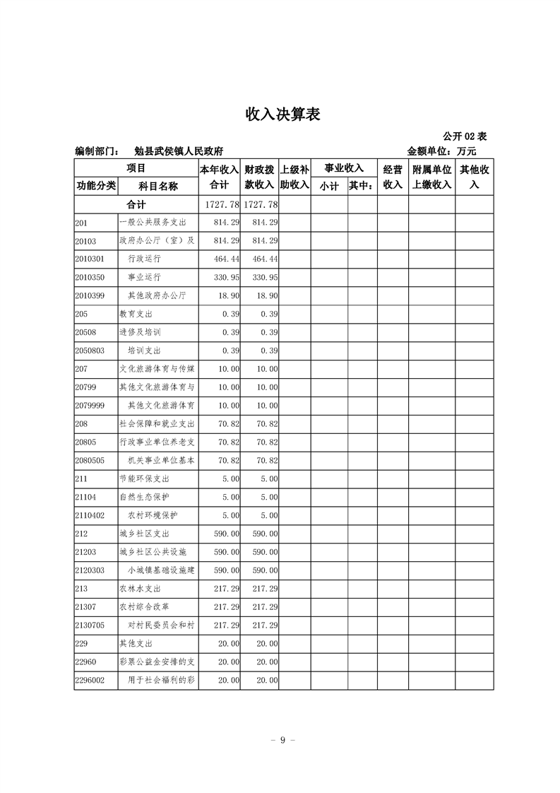 2020年镇办决算公开