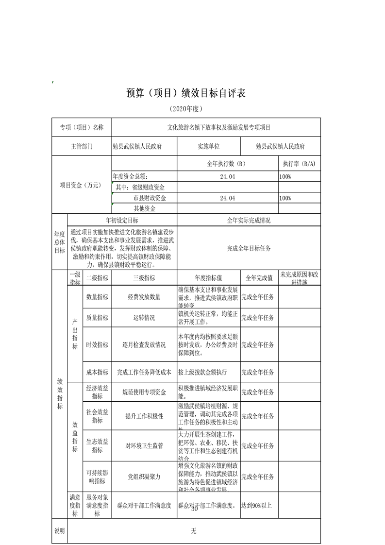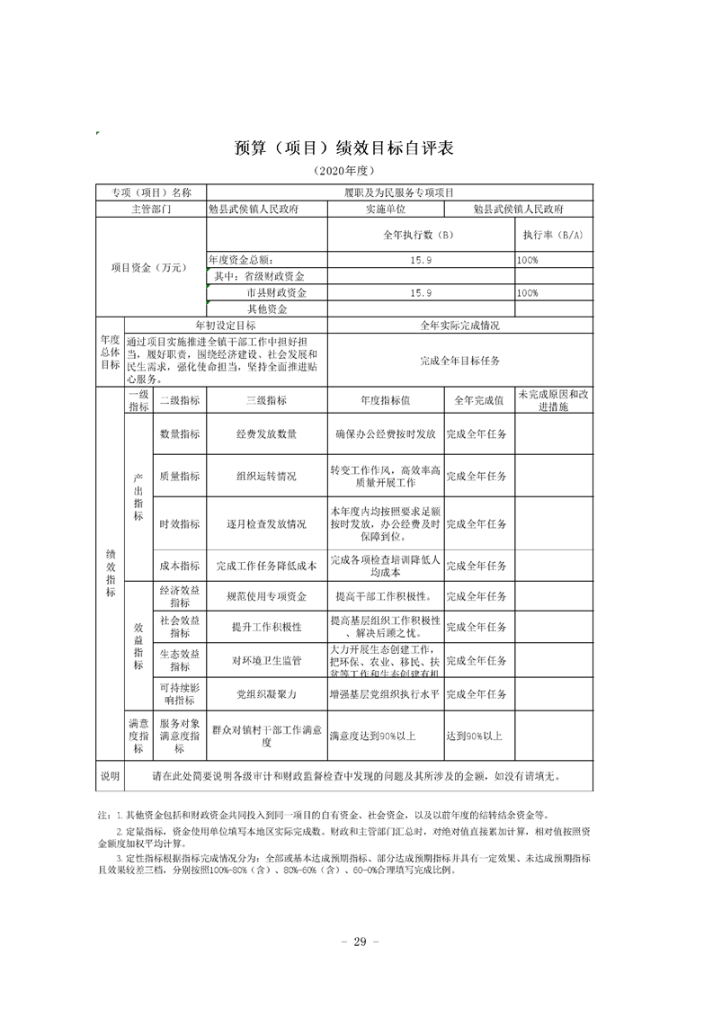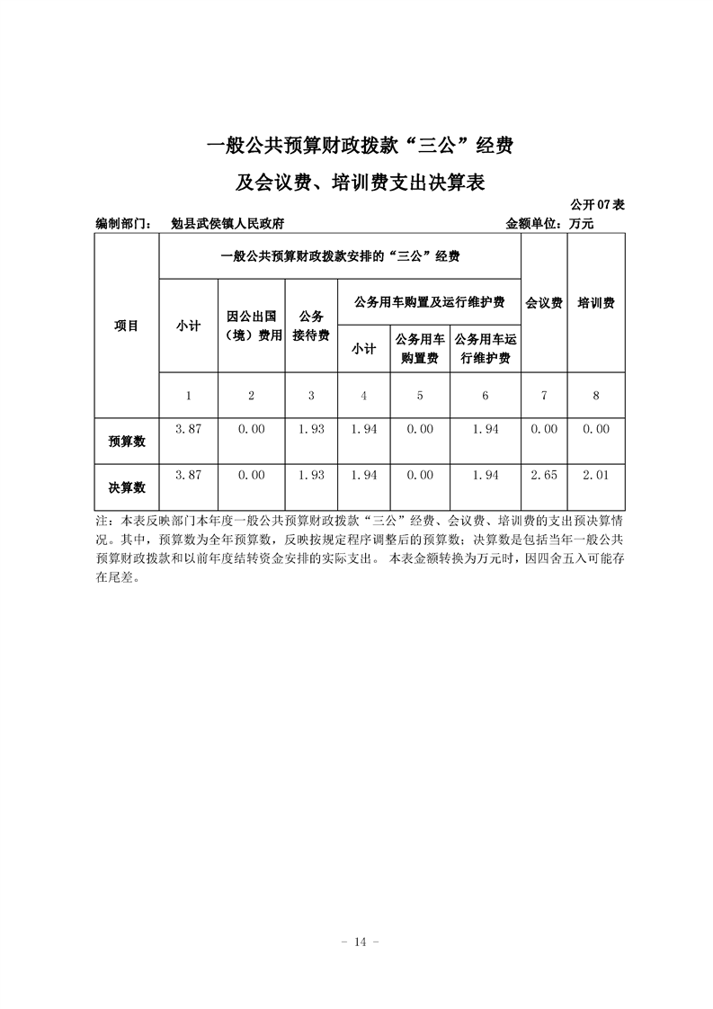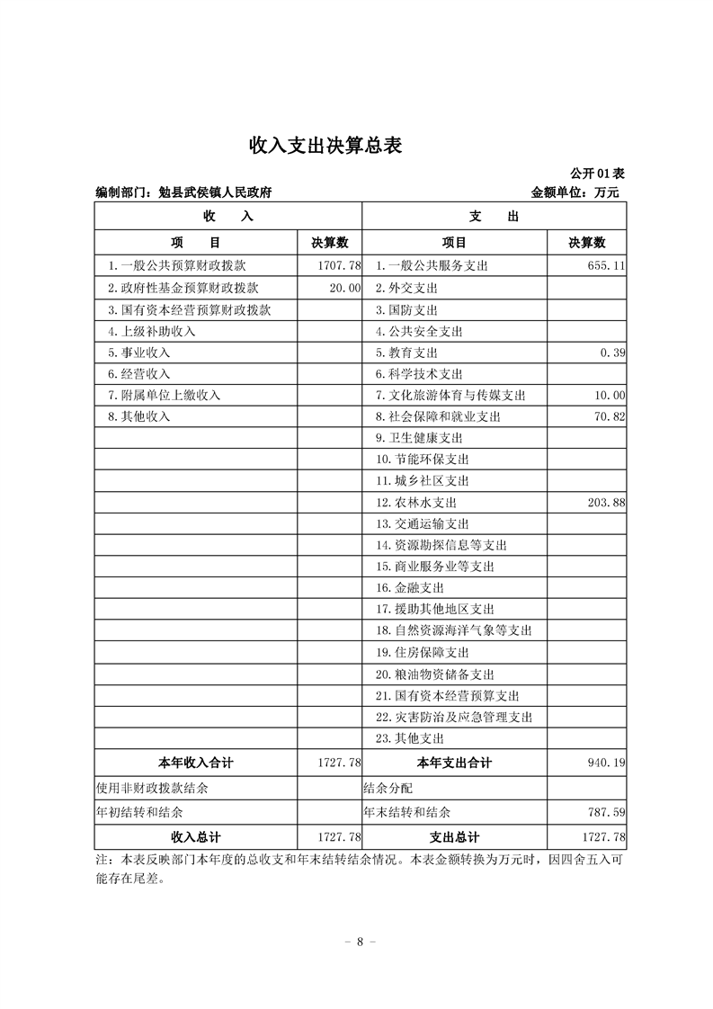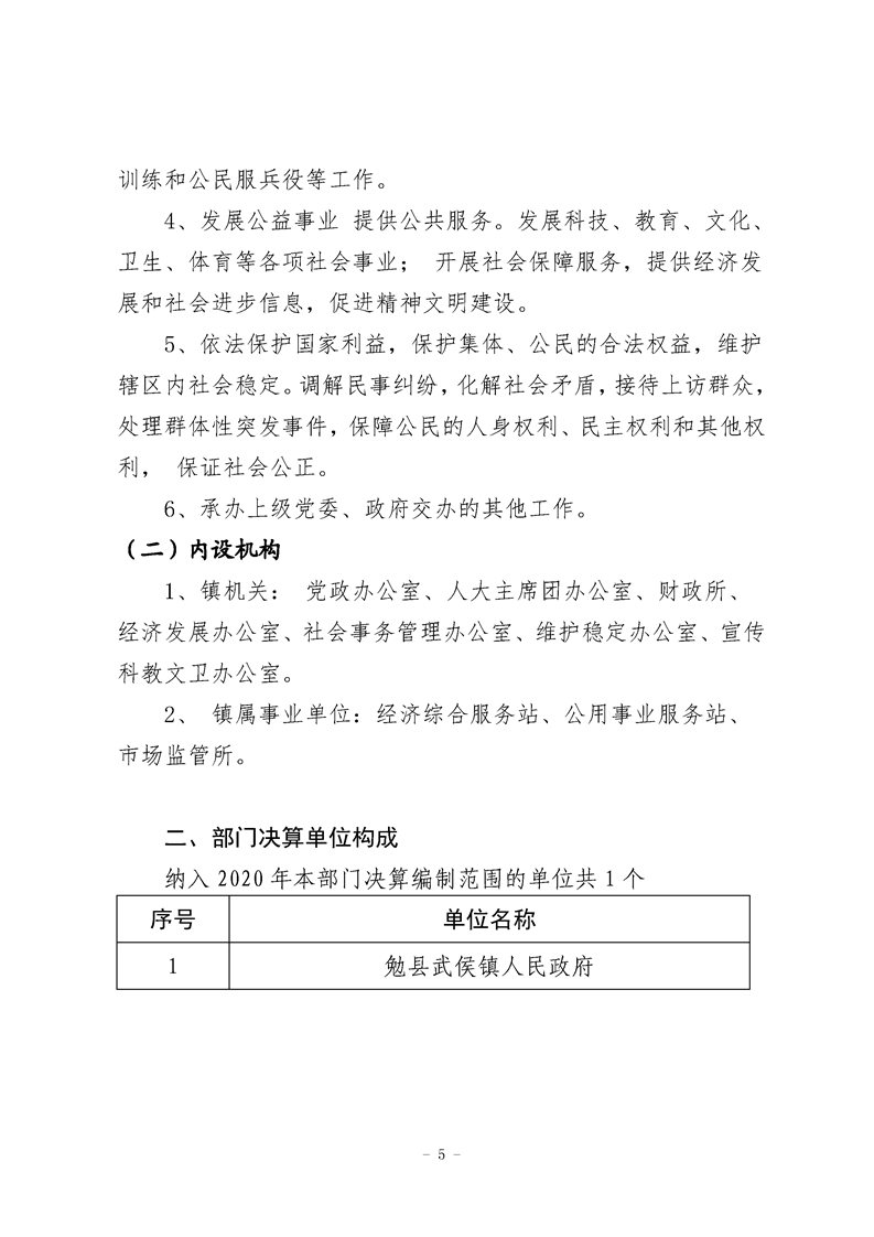 勉县武侯镇人民政府2020年部门决算