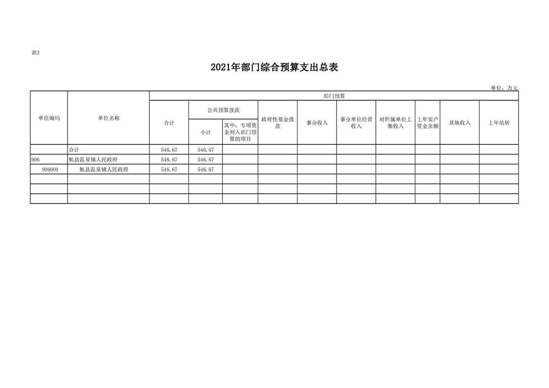 勉县温泉镇人民政府2021年部门综合预算