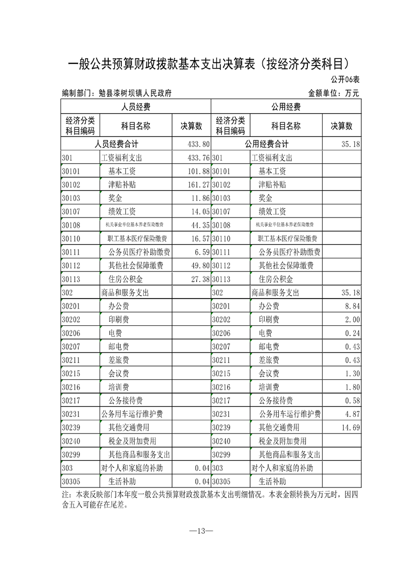 勉县漆树坝镇人民政府2021年部门决算