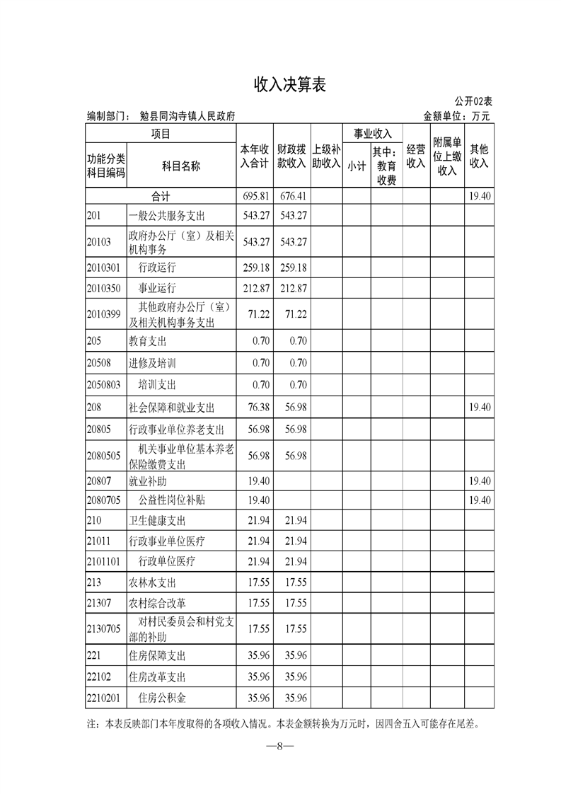 2021年镇办决算公开