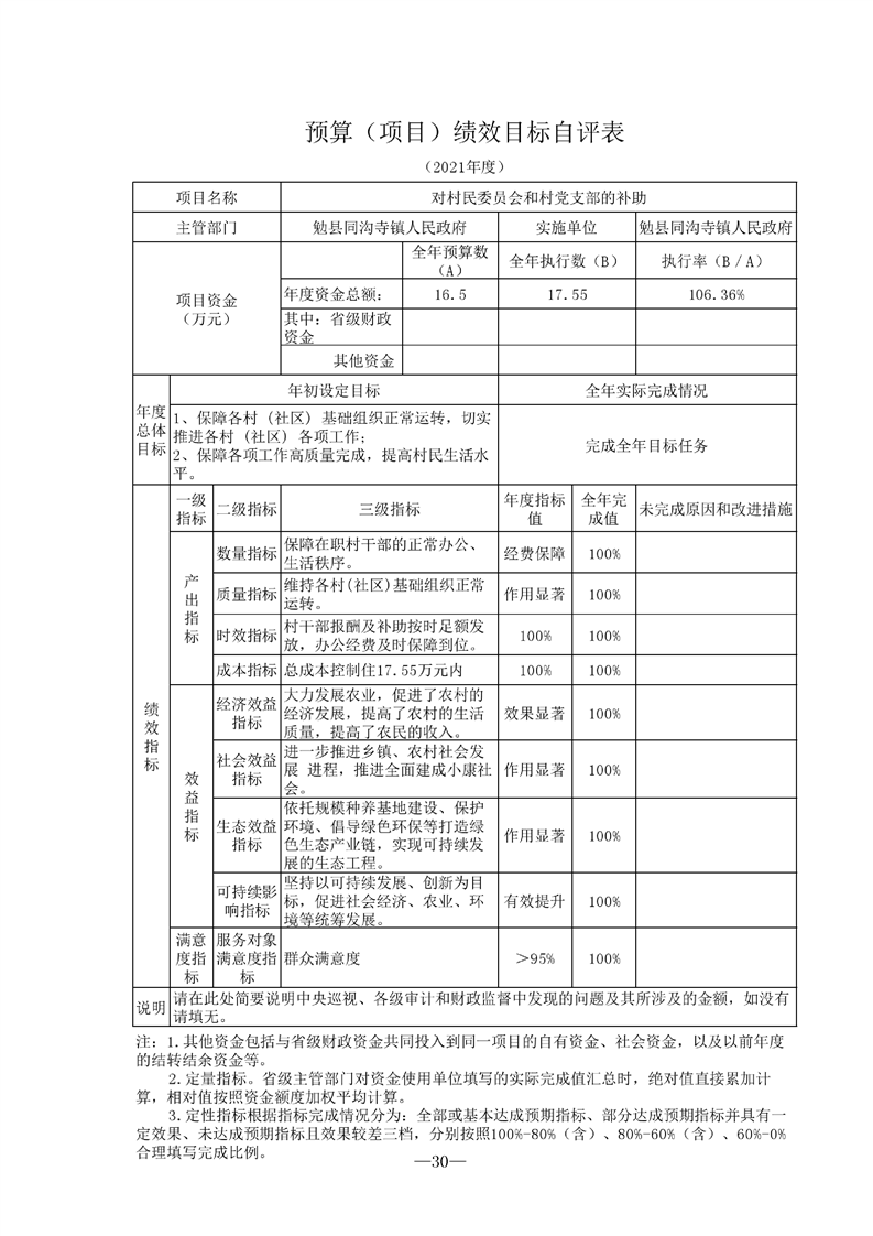 勉县同沟寺镇人民政府2021年部门决算