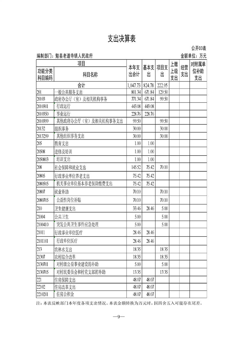 2021年镇办决算公开