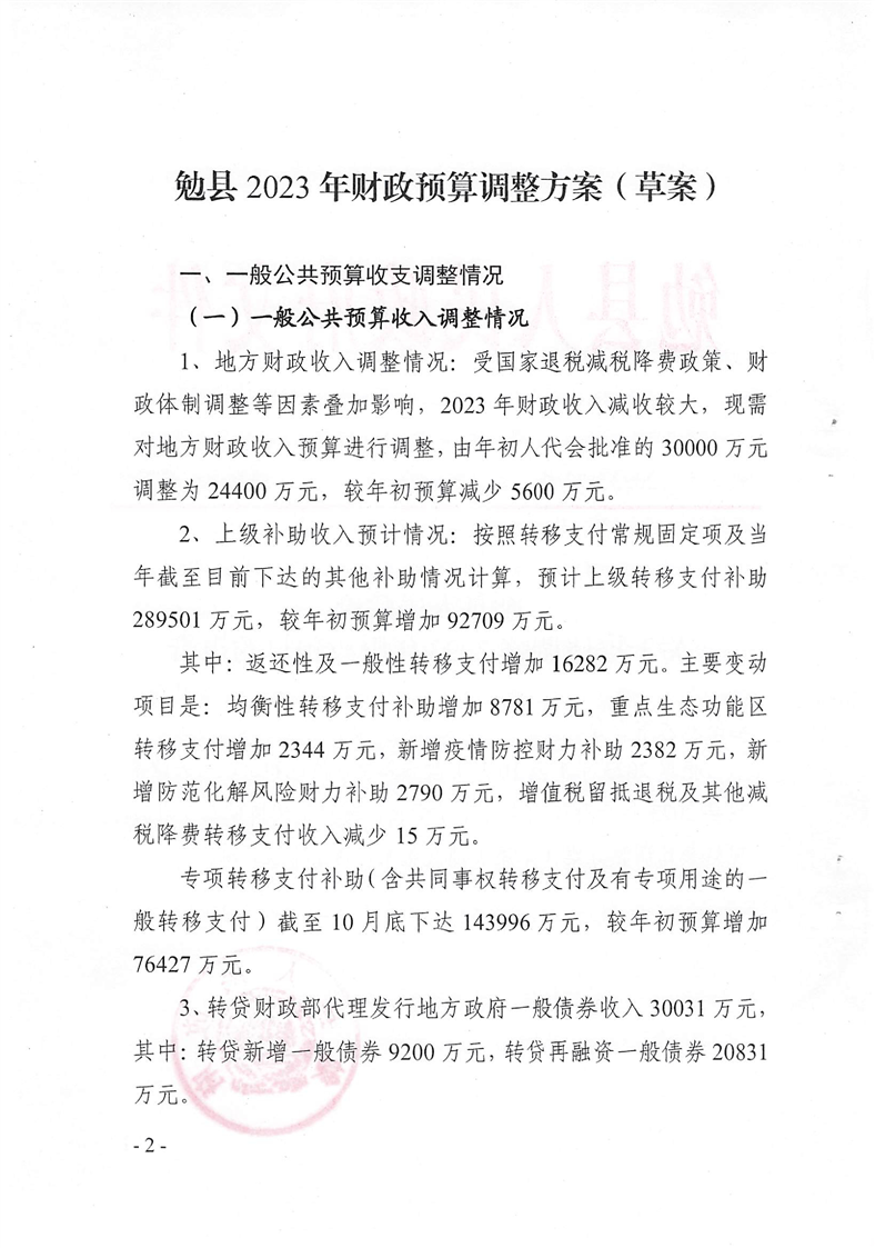 关于批准调整2023年财政预算的决定及提请调整2023年财政预算的报告