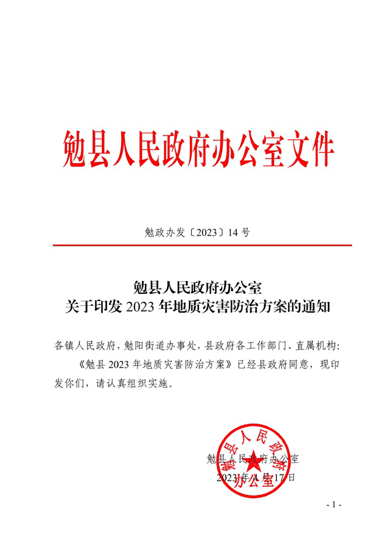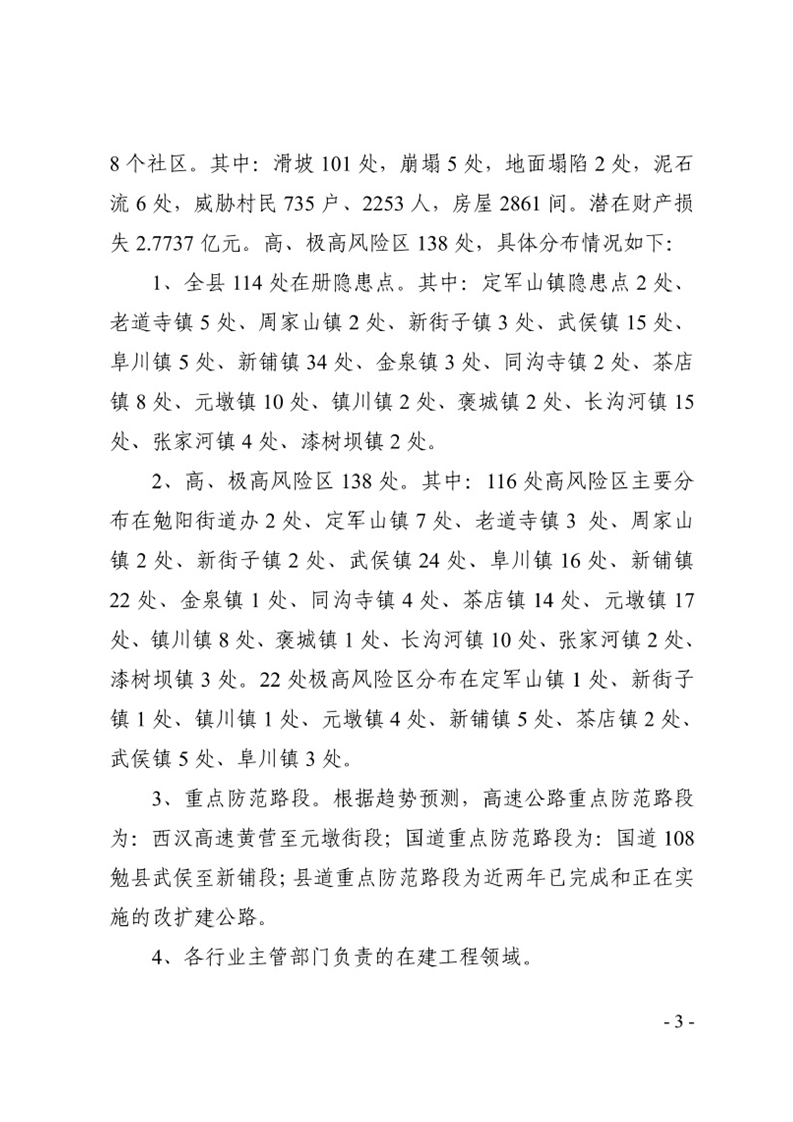 勉县人民政府办公室关于印发2023年地质灾害防治方案的通知