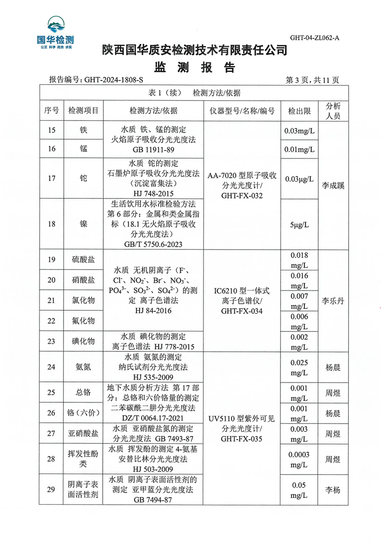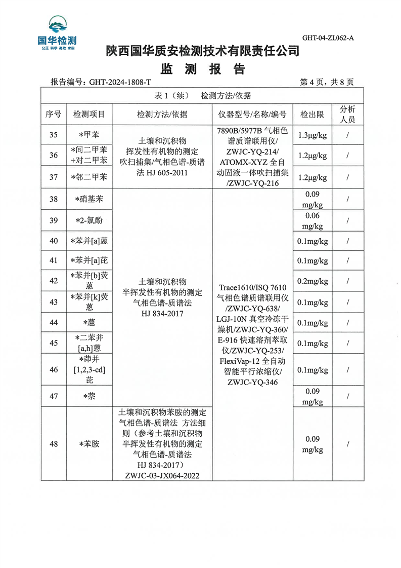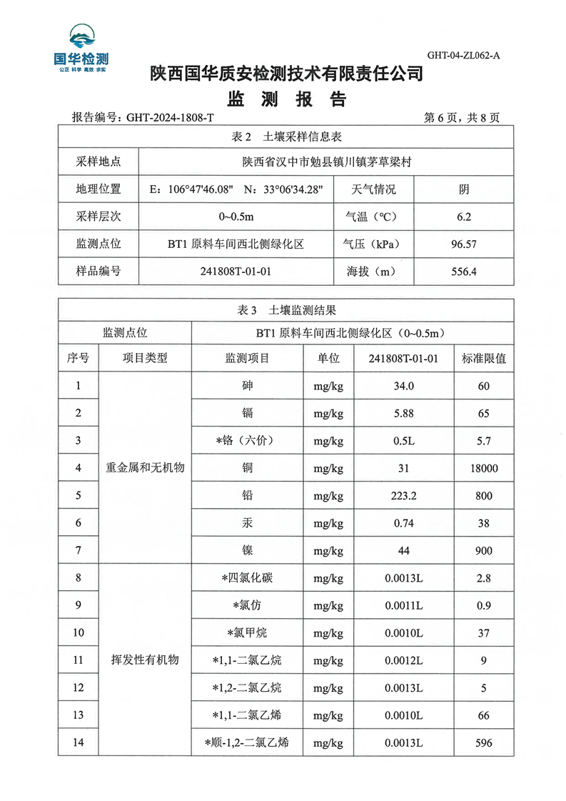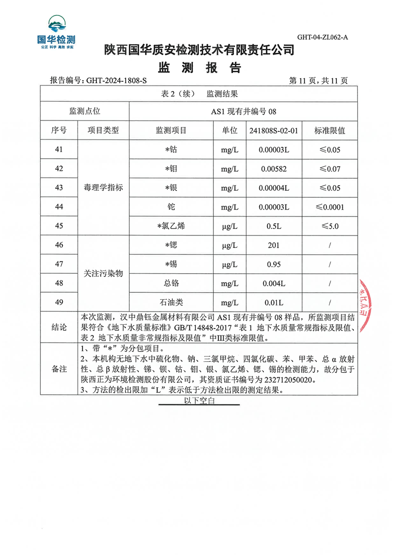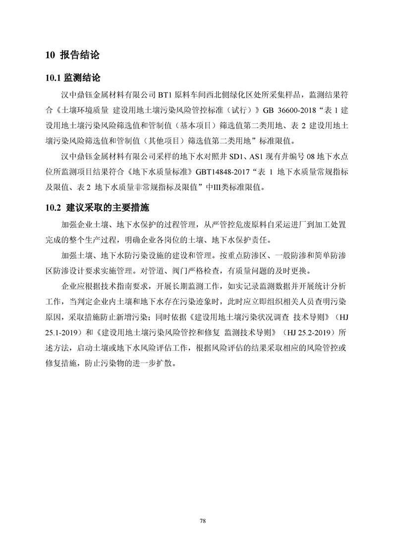 汉中鼎钰金属材料有限公司2024年度地下水和土壤自行监测报告